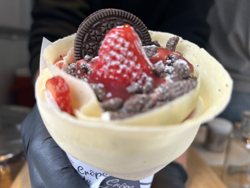 イベントをさらに盛り上げてくれたのは、校門前に駆けつけてくれたキッチンカー**「クレープtonton」**さんです。 発表を終えてホッと一息つく学生たちや、見学に訪れた方々が、甘い香りに誘われて列を作る場面も。 美味しいクレープを片手に、コースの垣根を越えて交流を楽しむ素敵な光景が見られました。