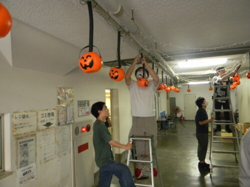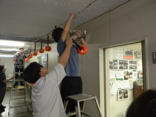 かぼちゃの提灯は電気工事士コースの学生が取付作業を担当。
